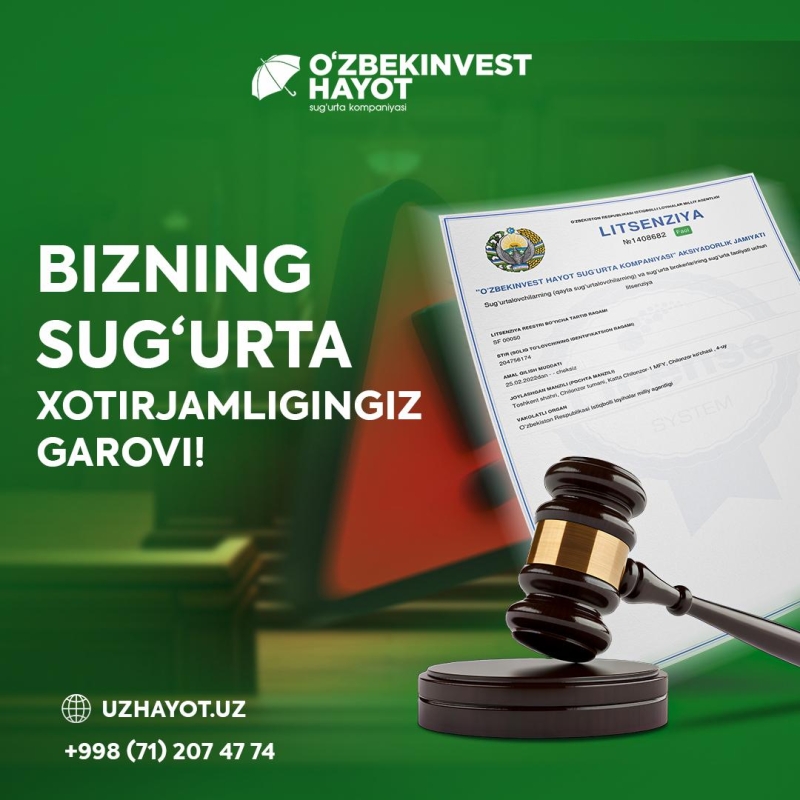 «O'zbekinvest Hayot СК» АЖ Ўзбекистон Республикаси Истиболли лойхалар Миллий агентлиги томонидан берилган 1408682-сонли лицензия асосида ҳаётни мажбурий суғурта қилиш фаолиятини қайта тиклашини эълон қилади.